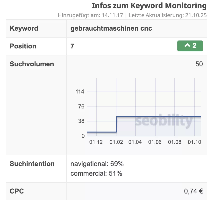 Das bestätigt, dass gezielte SEO-Maßnahmen im Maschinenhandel messbare Resultate bringen und langfristig zu mehr Sichtbarkeit und Umsatz führen.